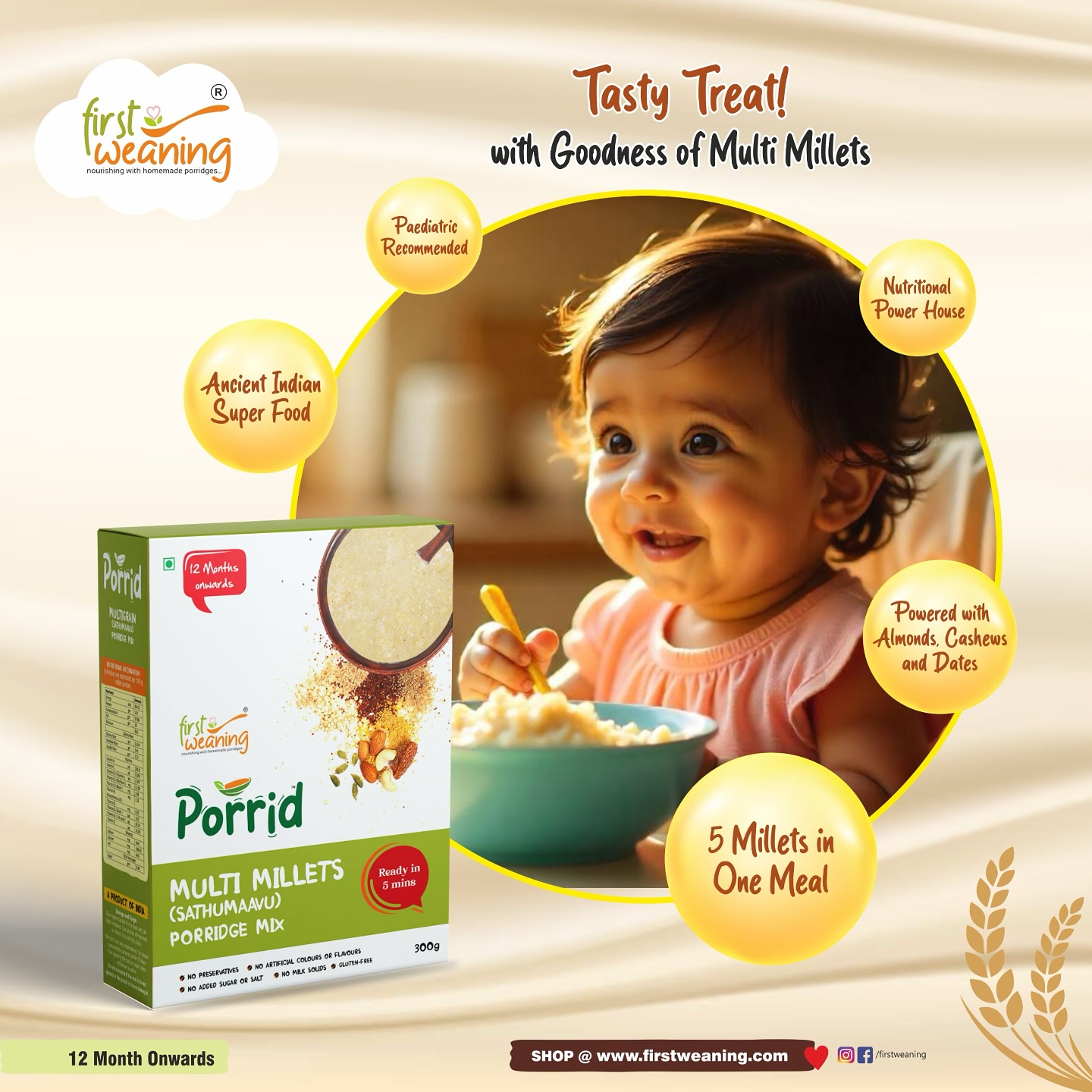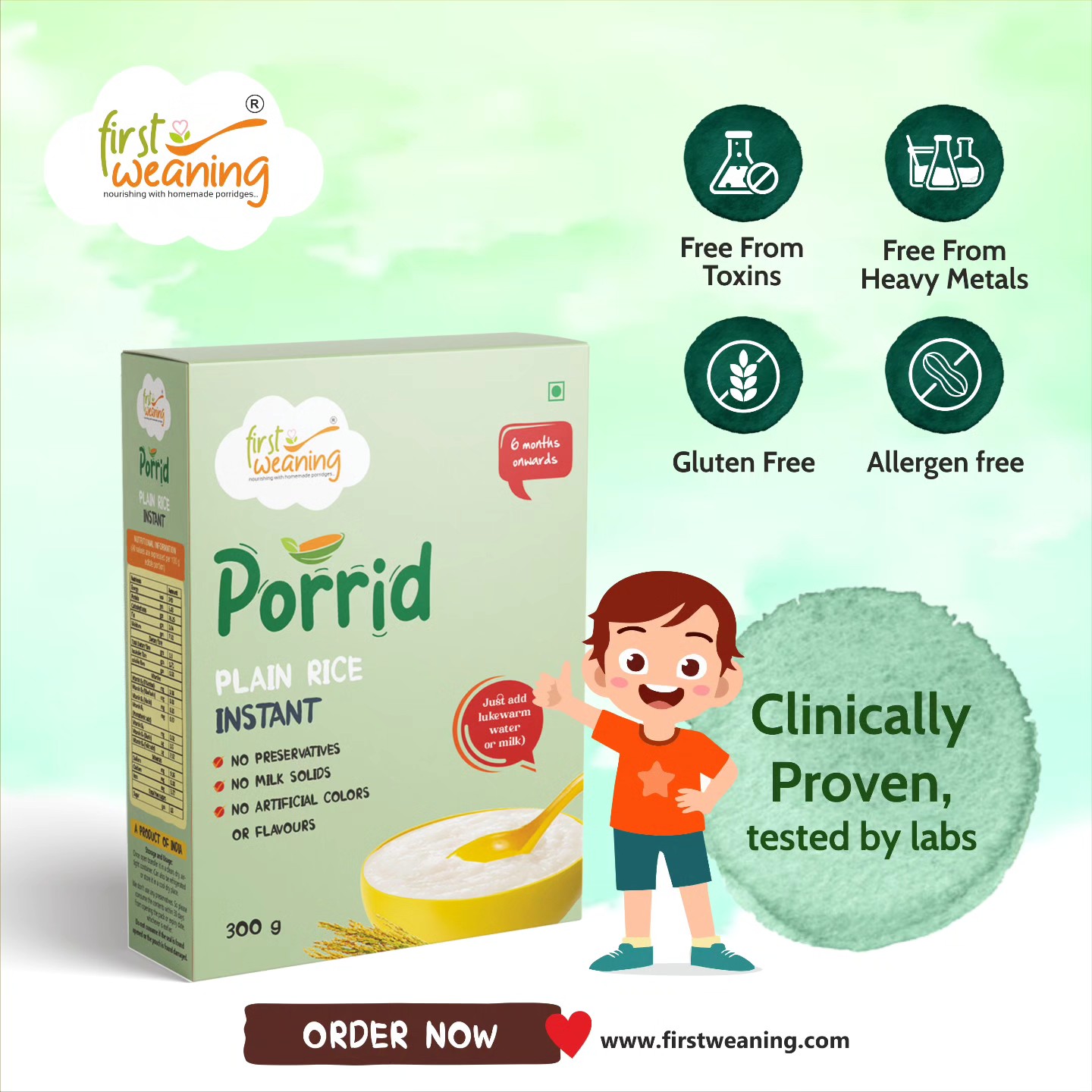 Vihaan is the most happiest customer of First Weaning. No matter whatever i cook for him, he only loves Oats Porridge… Thanks to First Weaning for making my life so easy..