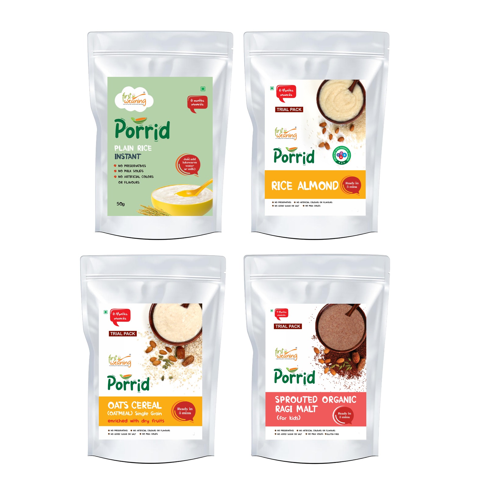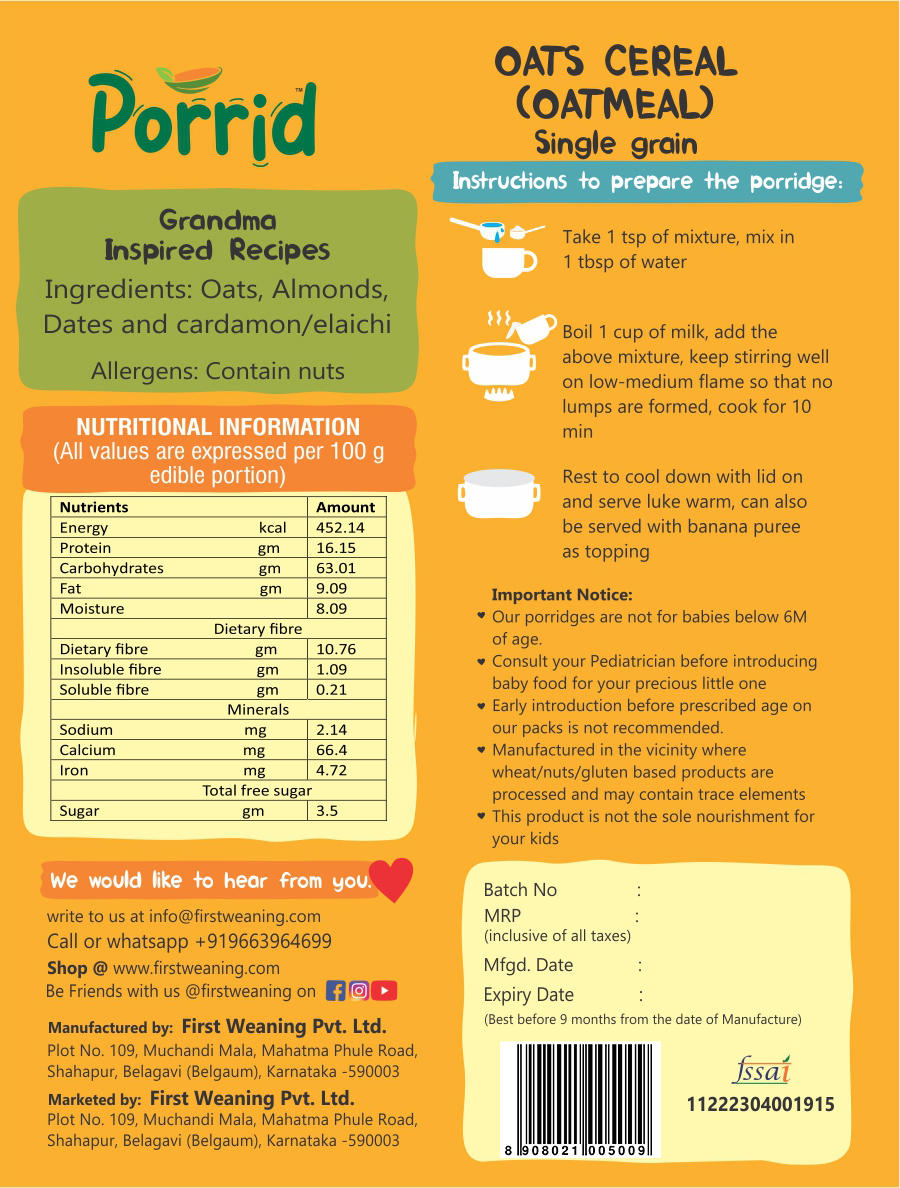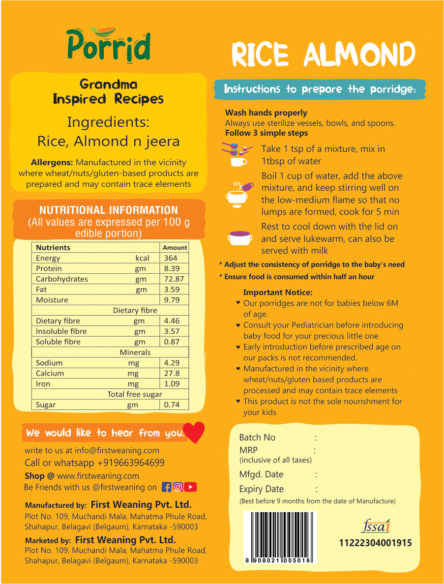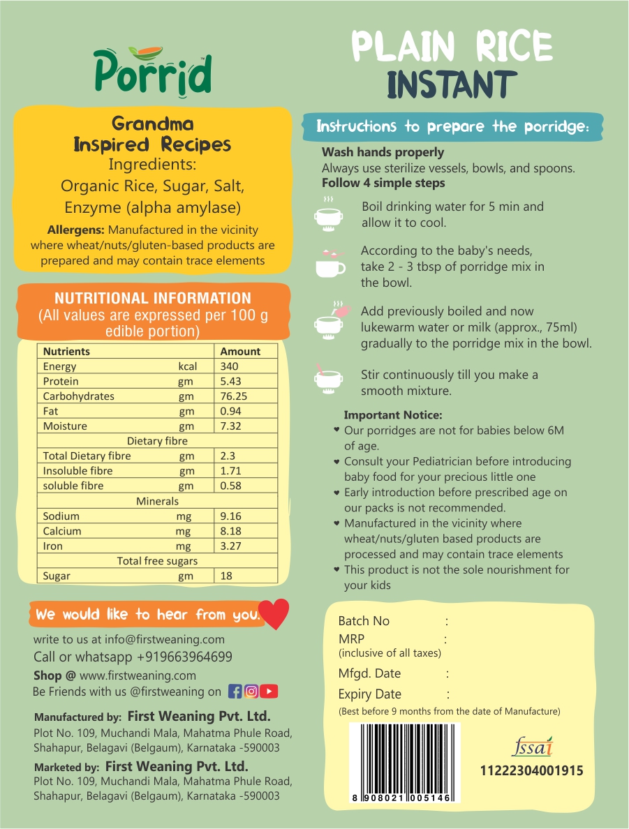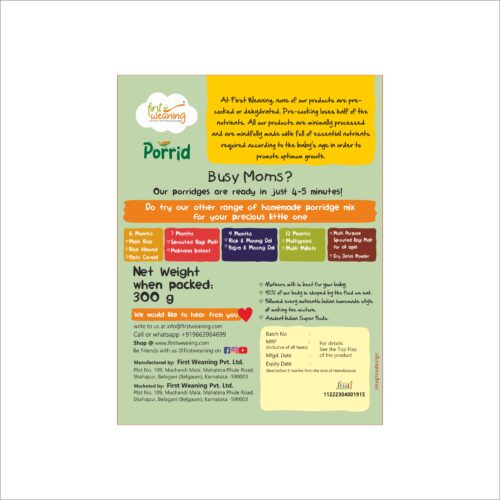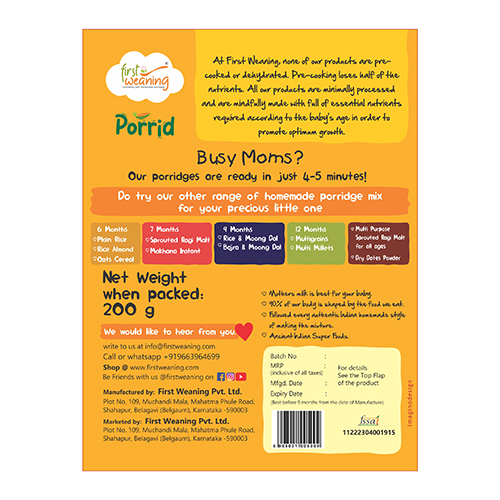 None of our products are pre-cooked or dehydrated. Most of the baby products available in the market are pre-cooked. Pre-cooking loses half of the nutrients. All our products are minimally processed and mindfully made, full of essential nutrients required according to the baby’s age in order to promote optimum growth.